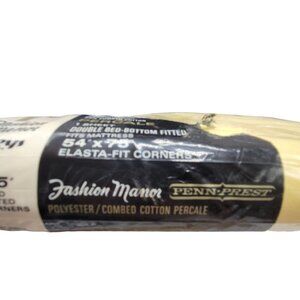 A delightful relic from a bygone era, this Penn-Prest Fashion Manor percale sheet offers a luxurious feel with its blend of polyester and cotton. Its Elasta-Fit corners and soft yellow hue add a touch of elegance to any bedding ensemble. A vintage treasure promising comfort and style.
