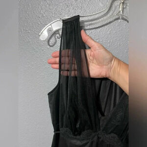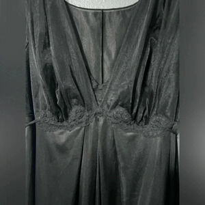 Vtg Pennys Gaymode Black 100% Nylon Long Night Gown 60s Sz MED w/Tie GORGEOUS. Shoulder to hem 54.5”. Armpit to armpit laying flat 19”. No rips. No stains. No flaws.