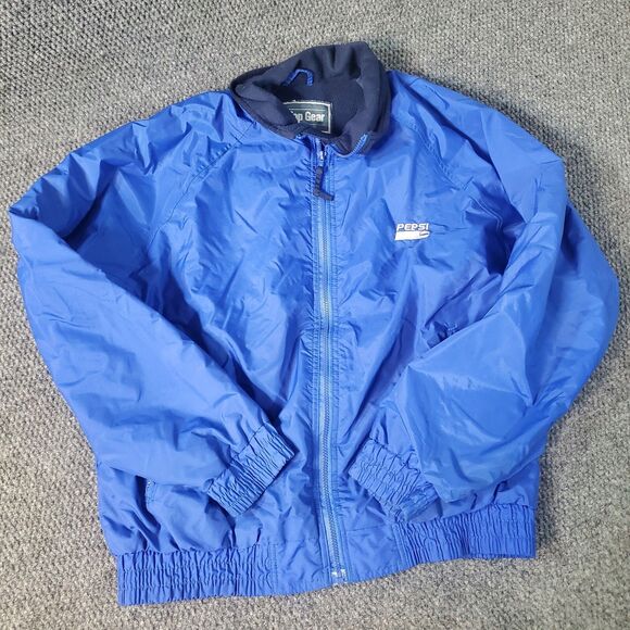 Vtg Pepsi Cola Jacket Adult XL Blue Top Gear Fleece Lined Nylon Bomber Men