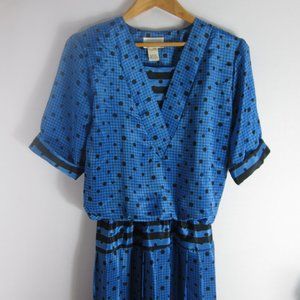 Vtg Perceptions Womens 5 / 6 Blue Polka Dot Short Sleeve Pleated Dress Small