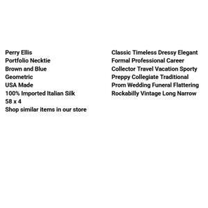 Perry Ellis Portfolio Necktie Brown and Blue Geometric USA Made 100% Imported Italian Silk 58 x 4