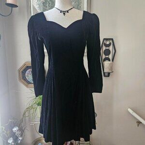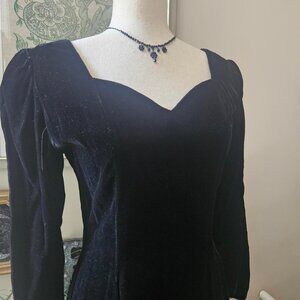 Vtg Perspective Size 7 Black Velvet Mini Dress, Sweetheart Neck, Puff Sleeve