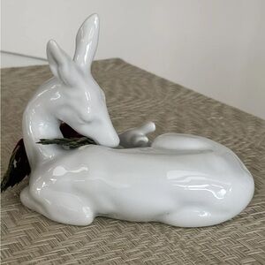 Vtg Petites Choses Toleware Porcelain Deer & Baby Holiday Wreath, Pristine