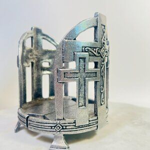 Vtg Pewter 3 Cross Candle Holder Easter Carson Indiana Candle up to 4" Diameter