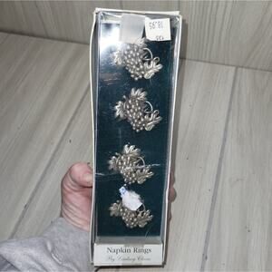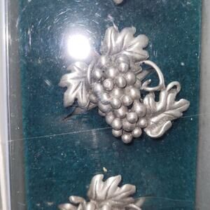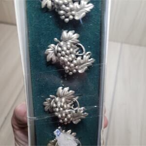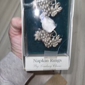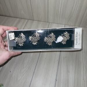Vtg Pewter 3D Grape Napkin Rings New In Box Lindsey Claire Fruit Dining Table Dinner Decor