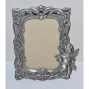 Vtg Pewter Angel Cupid Picture Frame Victorian Style ornate 3X5