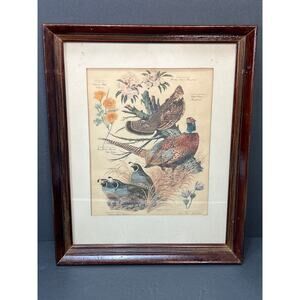 Vintage Framed Arthur Singer Quail Grouse Pheasant Botanical Print Flora and Fauna 14x16 Framed