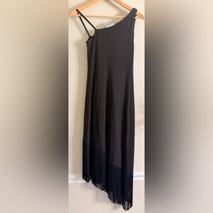 Vtg Pianoforte di MaxMara Black A-Line Fringe asymmetrical dress size42