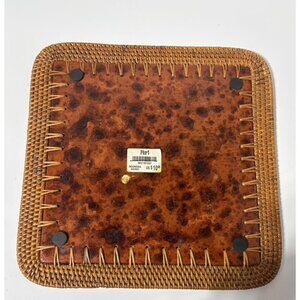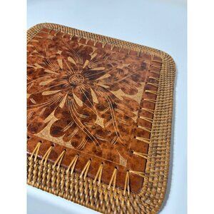Vtg Pier 1 Rattan Tile Trivet Embossed Floral Design Hot Plate Boho Kitchen Deco