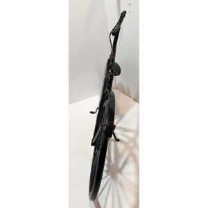 The Vtg Pier 1 Retro Kensington Station Black Metal Bicycle Clock is a vintage/retro style clock featuring a unique black metal bicycle design measuring 19 inches long and 13 inches tall. This analog clock runs on a quartz movement, making it both stylish and functional. Perfect for adding a touch of vintage charm to any desk, mantel, or shelf, this clock is sure to be a conversation starter in any home decor setting. Pre-owned by collector. In good condition. Clock tested - works. Black metal shows spots of paint off to make it look more authentic. Please see pictures for details.