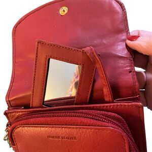 Vtg Pierre Cardin Leather Crossbody Handbag Expandable 9x6 Pen Calc Pockets Red