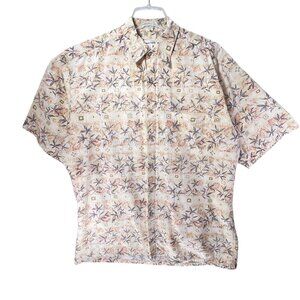Vtg Pierre Cardin Mens Short Sleeve Shirt Button Up Leaf Tropical Cotton Large