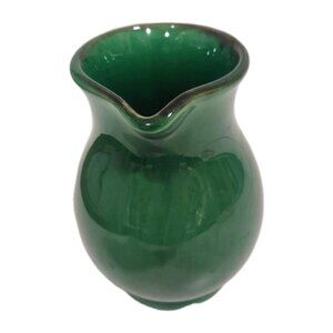 Vtg MCM Pierre Deux Le Poet Laval France Glazed Green Pitcher Jar Handmade 7x8x7", holds apx 40oz. (It is green with a dark brown black trim around the top edge and brown on the handle.)