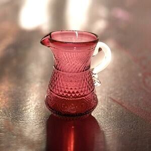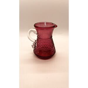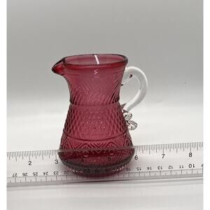 Vtg Pilgram Creamer Cranberry Glass Bennington Applied Handle Red Cottage Coffee