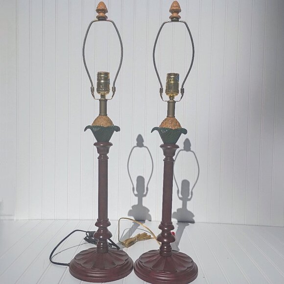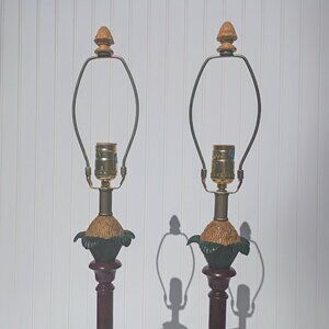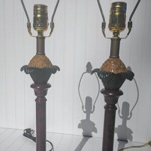 Vtg Pineapple Lamps Coastal Tropical Lamp Pair 3 Way Buffet Table Lightweight