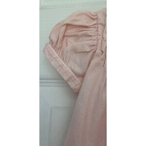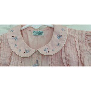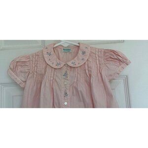Vtg Pink Baby Dress 1950s Hand Made Philippines Size 18 Months Emboidered Snow Drop Flowers Puff Sleeves 6 Tiny Buttons Mid-Century