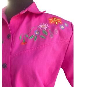 Vtg Pink Denim Western Floral Embroidered Top Midi Skirt Coord Set 8P Girlhood
