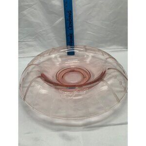 Vtg Pink Depression Glass Console Bowl Rolled Edge Floral Etched Compote