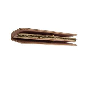 Vtg Pink Faux Leather Slim Clutch Wallet Rose Floral Cameo Emblem Zip Closure