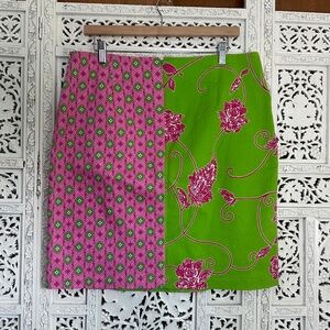 Vtg Pink & Green Fairy Core Preppy Patchwork Beaded Sequin Knee Length Skirt