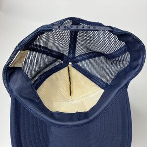 Keywords: vintage, Pinkerton Inc, Security Service, hat, cap, blue mesh snapback, embroidered patch, logo, wrinkled, storage, age, bent brim, manufacturer, moisture, Sport Cap tag, foam front, clean condition, photos.