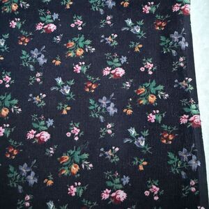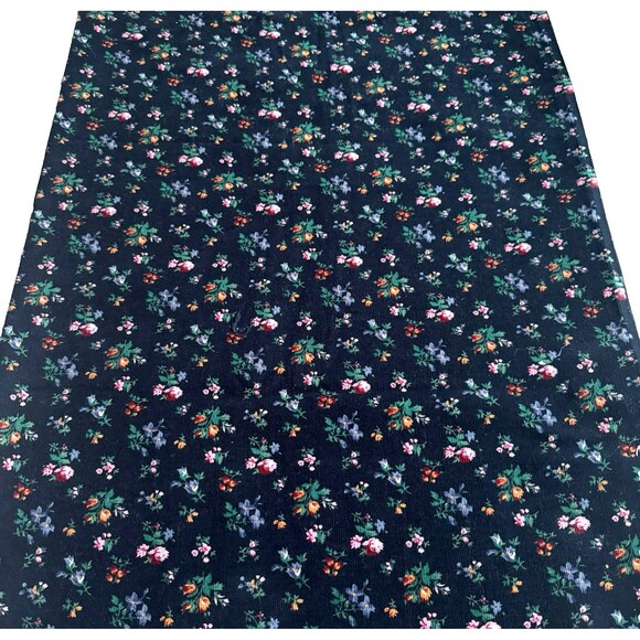 Vtg Pinwale Cotton Corduroy Pink Orange Blue Floral on Navy Blue Fabric 2 1/4yd