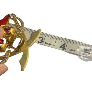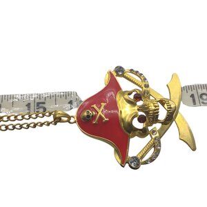 Vtg Pirate Skull Pendant Necklace Red Hat & Rhinestones Costume 18.5”