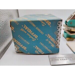 Vtg. Pirouette Desk Stationary EMBOSSER Stamper Midcentury Mod Aqua Reef Blue