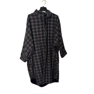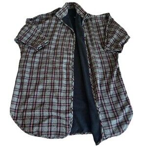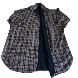 Vtg Plaid Fleece Lined Reversible Long Shacket Plus OS One Button Closure Gray