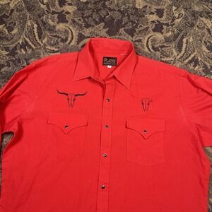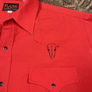 Vtg Plains Western Wear Shirt Mens Size Large Steer Pearl Snap Button Red