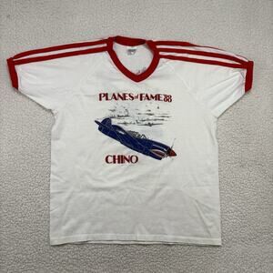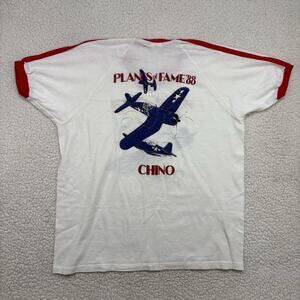 Vtg Planes of Fame 1988 Airshow Ringer T-Shirt Single Stitch Chino P-40 Warhawk