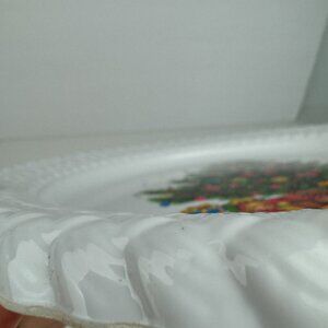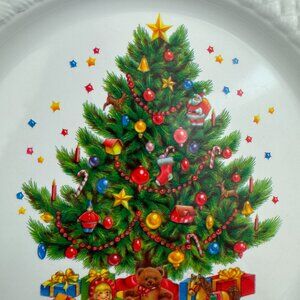 Vtg Plastic White Round Plate Basket Weave Edges Christmas Tree Imagery 11inches