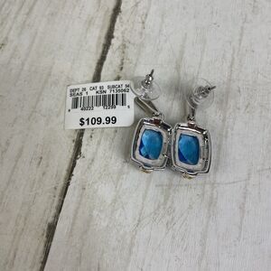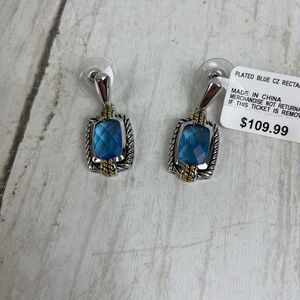 Vtg Plated 2 Tone Blue CZ Rectangle Earrings & Ring (Sz 8) Set- New With Tags