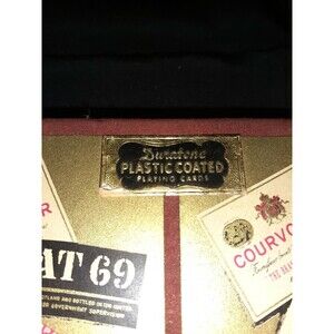 One box (two decks) Canasta cards. Box and card backs feature various alcohol brands including Couvoisier, VAT 69, PIPER HEIDSIECK, Cinzano and Pierre Smirnoff Vodka
