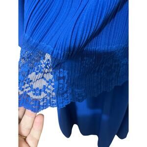 Vtg Pleated Blue Dress Lace Trim Sz 14 Modest Workwear Mother Of Bride Modest