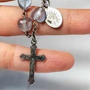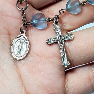 Vintage Pocket Bracelet Rosary Light Blue Beads 6 inches Religion Spiritual.