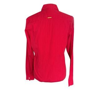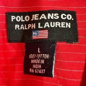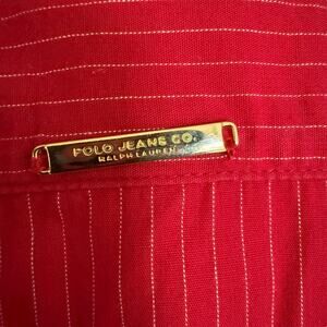 Vtg Polo Jeans Co Ralph Lauren Pinstripe Button Up Shirt Red Women's L Preppy