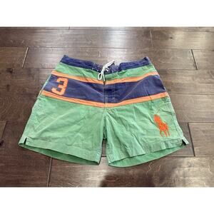 Vtg Polo Ralph Lauren #3 Mens Green Big Pony Lined Swimwear Trunks Size M MEDIUM