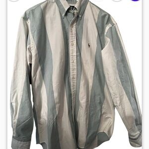 Vtg Polo Ralph Lauren Big Block Striped Cotton Long Sleeve Button Up Sz L Men