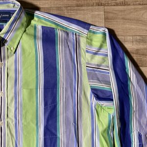 Vtg Polo Ralph Lauren Button Up Men XL Green Fun Shirt Stripe Blake Long Sleeve
