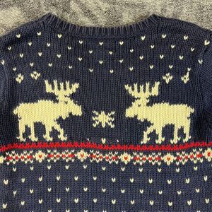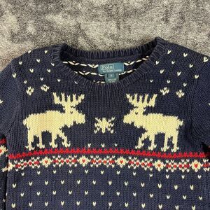 Vtg Polo Ralph Lauren Cotton Wool Fair Isle Moose AOP Knitted Sweater Youth 6. **There are a few stains on sweater as shown in photos; no other flaws noted. Refer to all photos for condition and sizing.