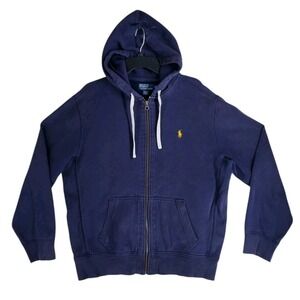 Vtg Polo Ralph Lauren Hooded Sweatshirt Jacket Mens XL Blue Distressed Pony Logo