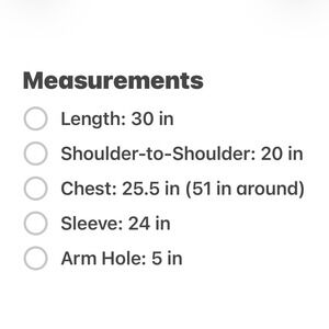 • Armhole: 4.75 in