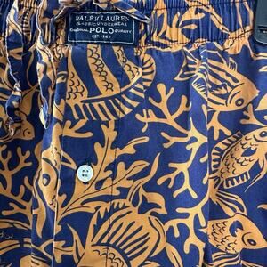 Vtg Polo Ralph Lauren Sleep Shorts Mens XL Orange Blue Fish Print Hawaiian