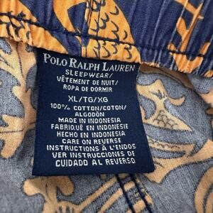 These Vtg Polo Ralph Lauren Sleep Shorts in XL feature a fun and colorful fish print design in Hawaiian orange and blue. Made from 100% cotton, these lightweight shorts have a drawstring closure and convenient pockets. Perfect for a tropical vacation or a relaxing day at the beach, these shorts are machine washable and ideal for year-round wear. The iconic Polo Ralph Lauren logo adds a stylish touch to this artsy and resort-inspired piece.