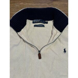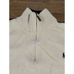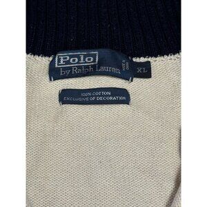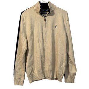 Vtg Polo Ralph Lauren Sweater Mens Size XL 1/4 Zip 100% Cotton Leather Pull