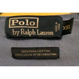 Vtg Polo Ralph Lauren Sweater V Neck Pima Cotton Light Blue Sz XXL Orange Pony