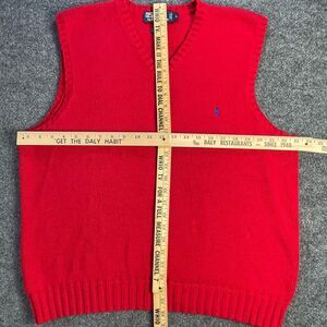 Vtg Polo Ralph Lauren Sweater Vest Mens Large Red Cotton Rib Knit Pony Fall Lg