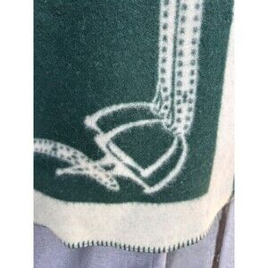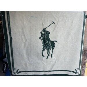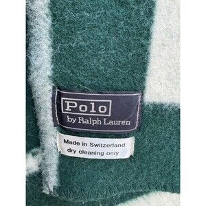 Vtg Polo Ralph Lauren Wool Blanket Green Beige Big Pony Switzerland Reversible