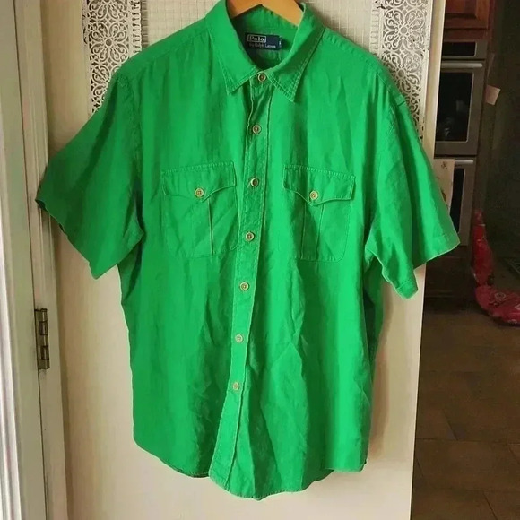 Vtg Polo Ralph Lauren linen blend short sleeve shirt Kelly Green Sz L